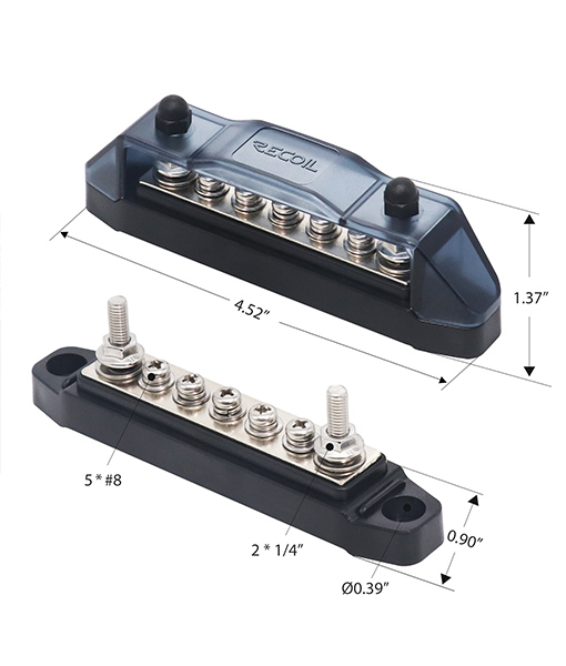 Recoil offers busbars in various sizes to cover all your needs. The busbars are built to last and come with insulation covers. They are high-quality power distribution blocks and allow for multiple connections to positive and negative systems. Each block can maintain multiple connections, making them flexible and robust for a variety of uses.