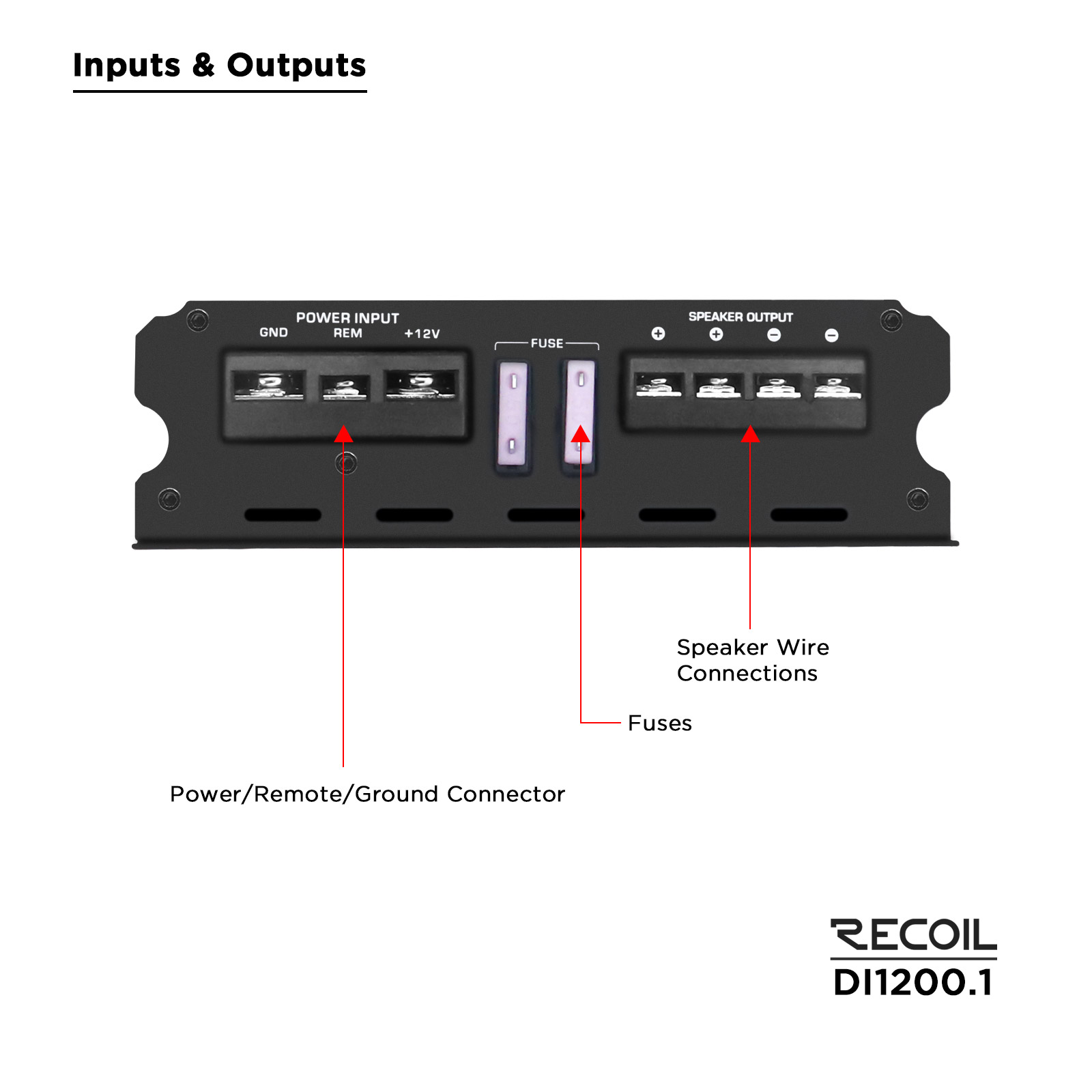 Recoil engineered the DI1200.1 Class D mono-block subwoofer amplifier to be dominant in both power and reliability. The DI1200.1D is 2-ohm stable and utilizes a wide array premium components that make it extremely powerful and reliable – such as its high speed MOSFET power supply and advanced PCB board layout. You’ll have full reign over your amplifier with the built-in user control panel, featuring a bass EQ, and variable adjustment tunings for gain level, low-pass filter, and subsonic filter.