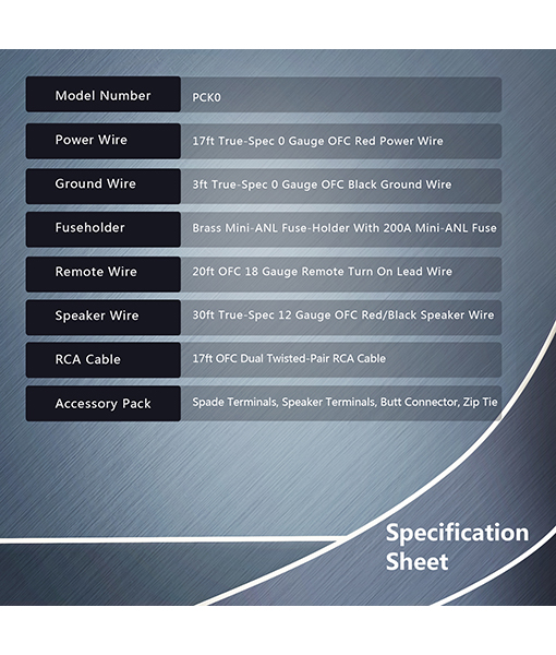 PCK0 Premium 0AWG OFC Complete Wiring Kits